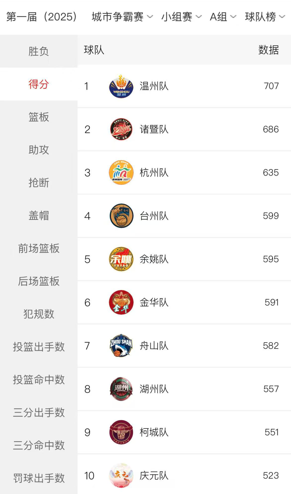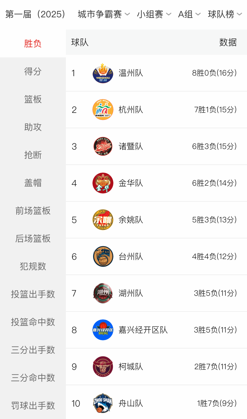 数据显示,截至目前,温州队稳居A组“胜负榜”“得分榜”榜首。